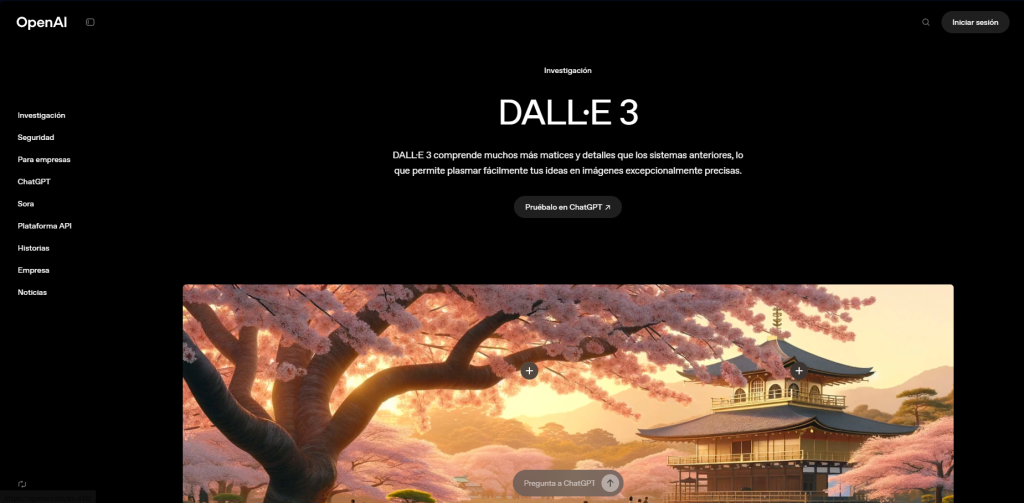 La otra estrella de OpenAI. DALL·E 3 está integrada en ChatGPT, así que podés charlar con ella mientras genera tus imágenes. “Mostrame un gato en una bicicleta voladora” y listo.