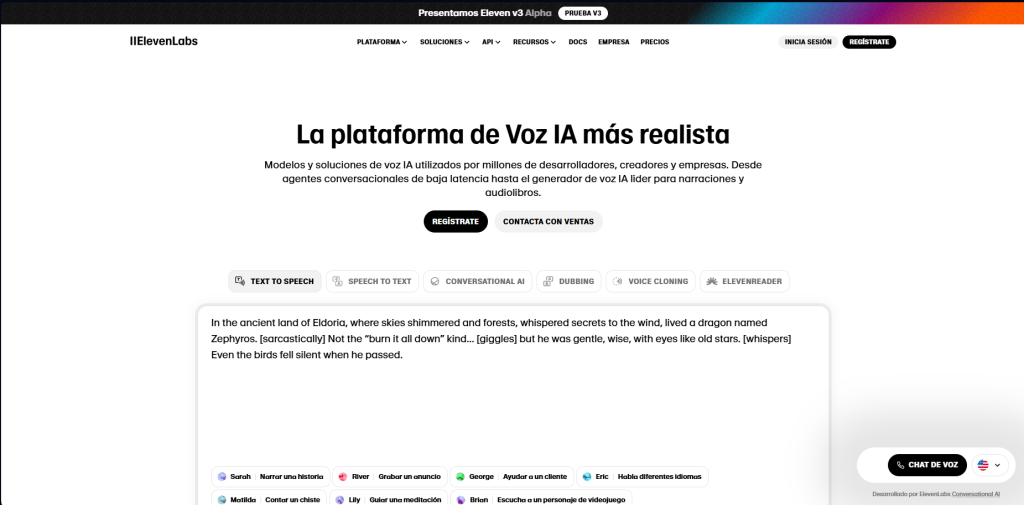 Convertí texto en voz como si tuvieras un estudio de grabación. ElevenLabs crea audios hiperrealistas, con entonación emocional, perfectos para narraciones, podcast, videos o audiolibros.