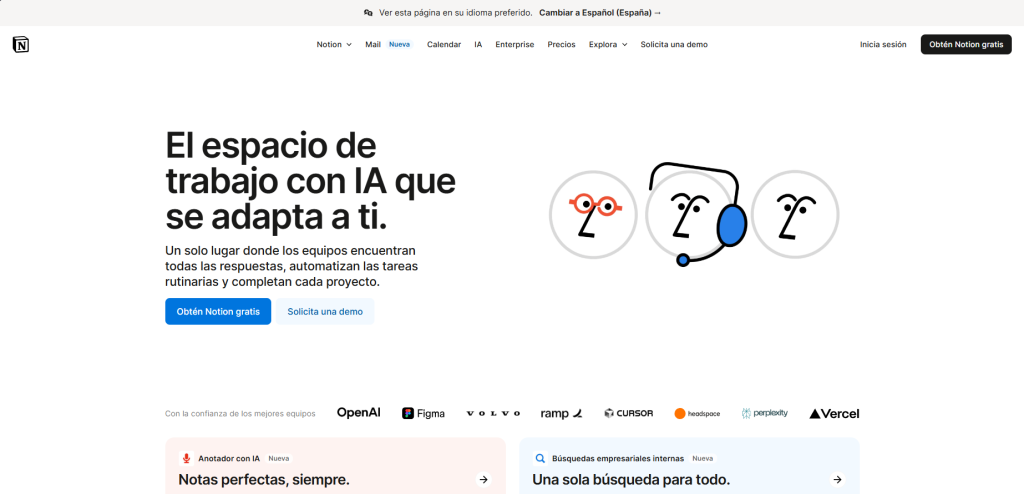 Organizate como un CEO. Si ya usás Notion, su IA integrada te permite planificar, redactar, resumir y tomar decisiones sin salir de la app.
