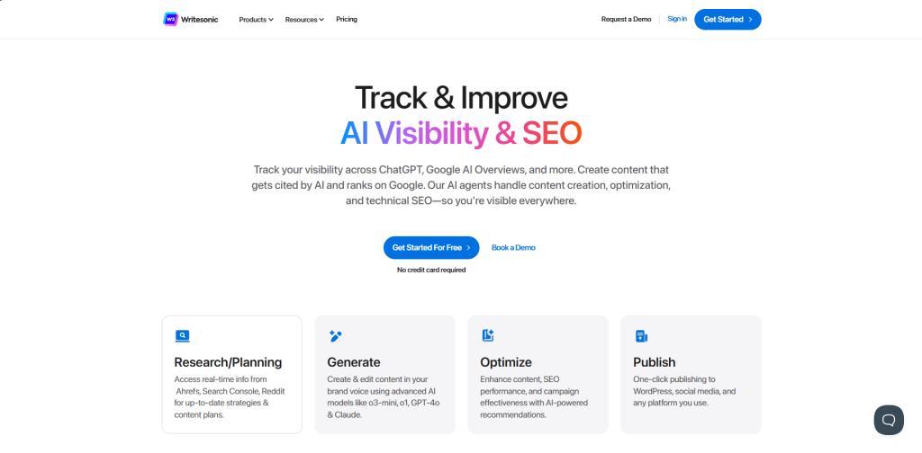 Si hacés SEO o vendés online, te va a encantar. Writesonic genera fichas de productos, descripciones, anuncios y textos optimizados con solo un par de inputs.